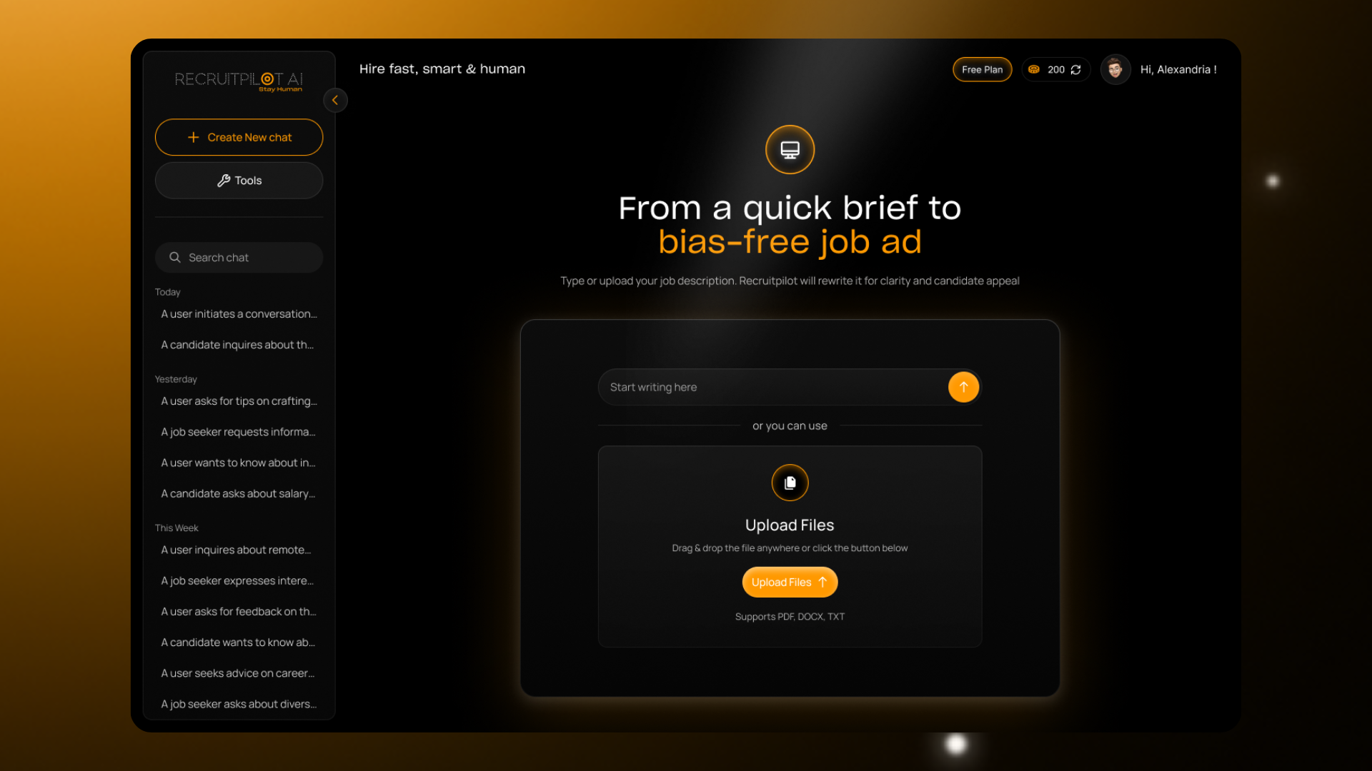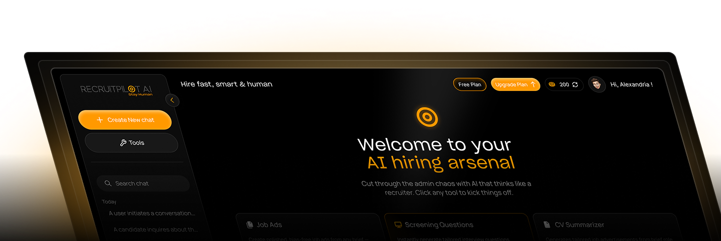 RecruitPilot gives you free AI credits every month — no catches, no contracts, no clunky setup.